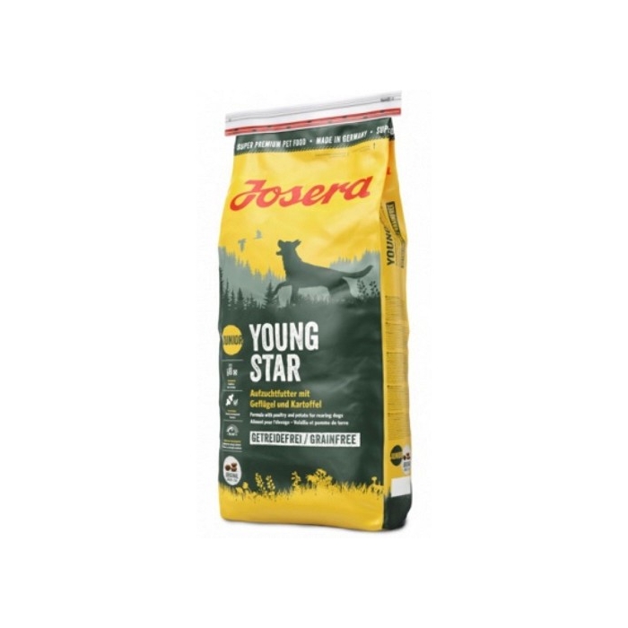 Josera YoungStar doprovází Vašeho pejska od 8. týdne věku až do dospělosti. Krmivo bez obilovin disponuje optimálním poměrem vápníku a fosforu, což je v růstové fázi velmi důležité, dále obsahuje vitamín C, mangan a měď. Tato kombinace důležitých látek příznivě ovlivňuje vývoj kostí a zdraví kloubů. Zároveň dodává mladým pejskům v růstové fázi s běžnou aktivitou přiměřené množství energie bílkovin z kvalitního drůbežího masa a brambor. Krmivo je lehce stravitelné a vhodné i pro jedince s citlivým zažíváním. Krmivo Josera YoungStar je složeno výhradně z kvalitních surovin. Toto prémiové krmivo neobsahuje konzervační látky, barviva ani ochucovadla a geneticky upravené suroviny. Všechny výrobky značky Josera neobsahují přísady s alergenním potenciálem - sóju, cukr a mléčné výrobky. Drůbeží maso, které je hlavní složkou krmiva, je určeno pro lidskou spotřebu a podléhá pravidelné kontrole kvality stejně jako ostatní suroviny. Lahodné granule jsou baleny v praktické kapsičce AromaSafe, která uchová chuť, vůni i důležité živiny. Josera YoungStar v krátkém přehledu: - kvalitní krmivo pro štěňata od 8. týdne věku - bez obilovin: vhodné i při potravinových alergiích a intolerancích - optimální poměr vápníku a fosforu, vitamín C, mangan a měď: speciálně vyvážené pro potřeby štěňat v růstové fázi, podporuje vývoj kostí a zdravé klouby - s drůbežím masem: lehce stravitelné a kvalitní maso určeného pro lidskou spotřebu - vyvážený obsah energie a bílkovin: optimální množství pro psy v růstové fázi s běžnou aktivitou - 100% bez konzervačních látek, barviv a ochucovadel, bez genetické úpravy - bez přísad s alergenním potenciálem: pšenice, sója, cukr a mléčné výrobky - vyrobeno v Německu: kontrolovaná kvalita prostřednictvím laboratoře značky Josera - lahodné granule: granule přiměřené velikosti, vhodného tvaru a konzistence - ochrana chuti a vůně: uzavíratelné balení zajistí uchování chuti, vůně a živin Složení: sušené brambory (44%), drůbeží masová moučka (28%), drůbeží tuk, řepné řízky, sušený svatojánský chléb, hydrolyzovaný drůbeží protein, bramborový protein, kvasnice, rostlinný protein (hydrolizovaný), lososový olej 0,80%, minerály, sušený kořen čekanky (přirozený zdroj inulinu), sušené maso novozélandských mušlí slávek zelenoústých (Perna Canaliculus). Deklarované jakostní znaky: protein 25,0%, obsah tuku 13,0%, hrubá vláknina 2,1%, hrubý popel 7,2%, vápník 1,40%, fosfor 0,90%, sodík 0,40%, hořčík 0,10% Doplňkové vyživovací látky na 1kg: Vitamín A 20.000 IE, Vitamín D3 1.500, Vitamín E 180mg, Vitamín B1 10mg, Vitamín B2 15mg, Vitamín B6 15mg, Vitamín B12 90mcg, kyselina pantothenová 40mg, niacinamid 85mg, kyselina listová 4mg, L-Carnitin 250mg, Taurin 1000mg, biotin 800mcg, vitanín C 200mg, železo (sulfát železa, monohydrát) 180mg, zinek (chelát zinku glycin, hydrát) 160mg, mangan 16mg, měď (chelát měďnatý glycin, hydrát) 20mg, jód (jodičnan vápníku) 2,0mg, selen 0,25mg.